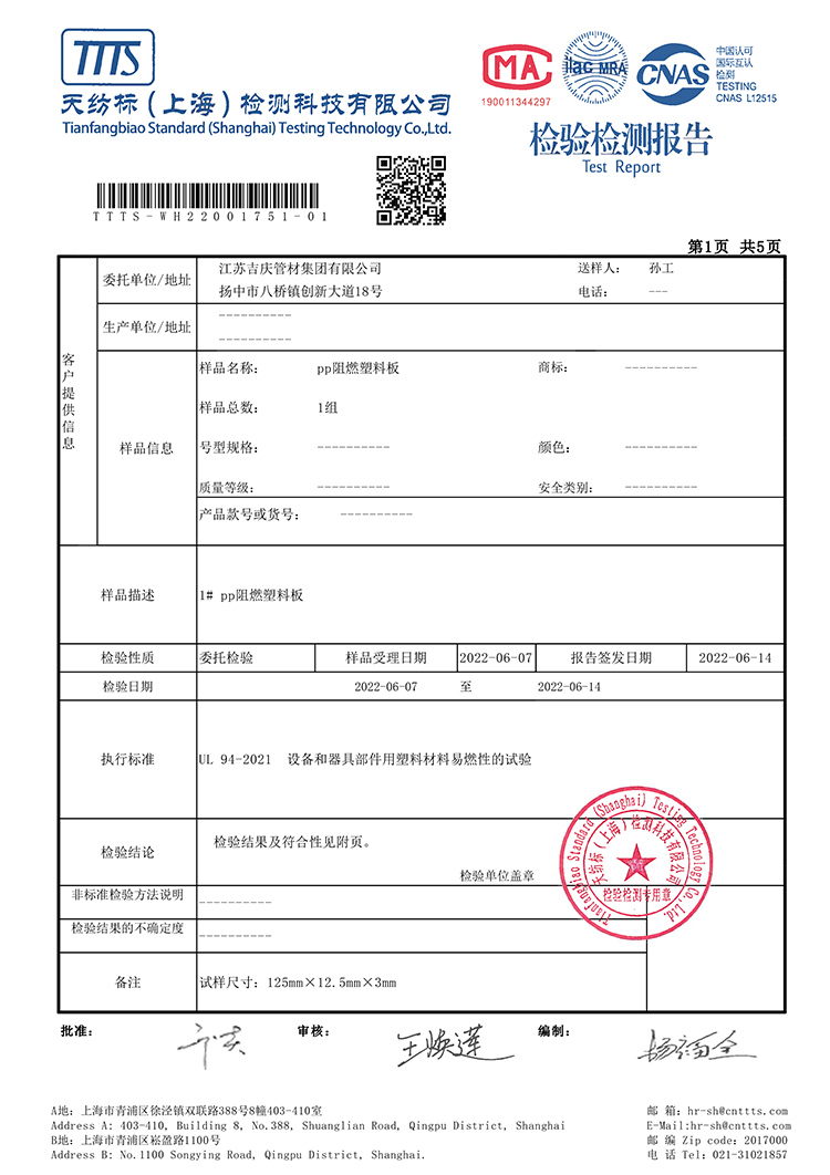 江蘇吉慶管材集團有限公司創辦于2010年2月,是pp管,pp管材,pp管件,pp風管,frpp管,frpp管材,pph管,pph管材,pph管件,pph風管,pvdf管,pvdf管材,pp儲罐,pp板材,噴淋塔,脫硫塔等環保設備的專業化生產企業。公司占地50余畝,擁有各類資產8000余萬元,專業技術人員20余人,管材生產線10條,管件生產線11條,具備了10000余噸各類防腐塑料制品的年生產能力。公司通過了ISO9001-2000質量體系認證,同時被評為AAA信用單位,2018年公司被評為高新技術企業,此后陸續取得安全生產管理證書等榮譽。公司位于水上花園城市----江蘇鎮江揚中市八橋鎮永福路18號,交通便捷,可直接導航至公司園區內。公司全體員工將以高度的敬業精神,嚴格的質量控制理念和科學的管理方法,及時周到的服務,竭力為防腐塑料管道在各領域的推廣和應用作出更大的貢獻!